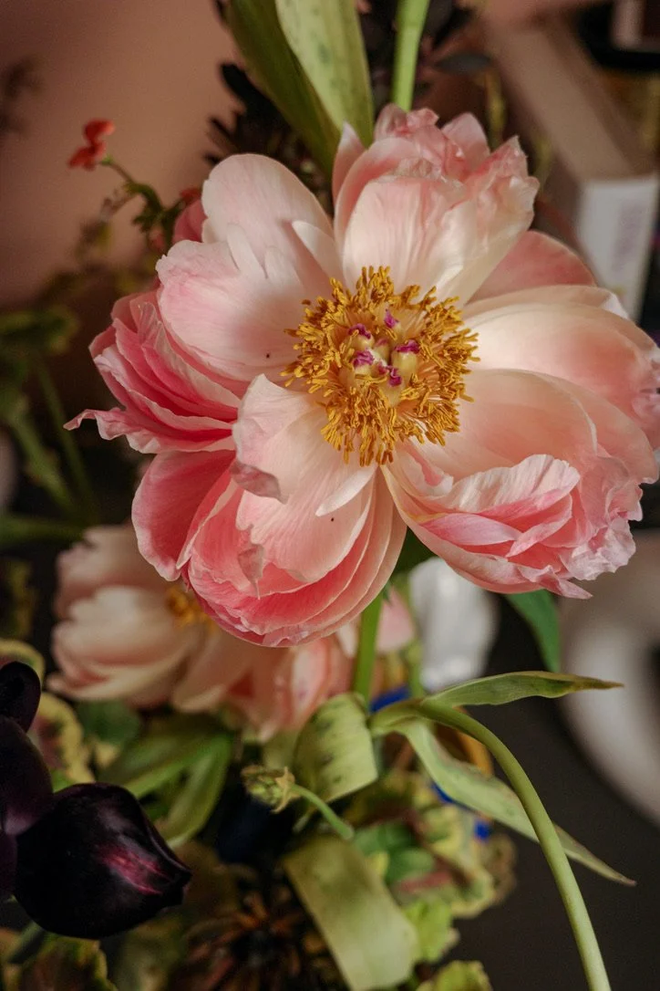 I honestly didn’t expect to enjoy this arrangement as much as I did. on its 5th day it’s still looking beautiful which will push my preconception on not using peonies as a weekly flower because of how long they last. I think for the right client and in the right temperature they could last a full 5 day span for office work, if not a full 7 days.