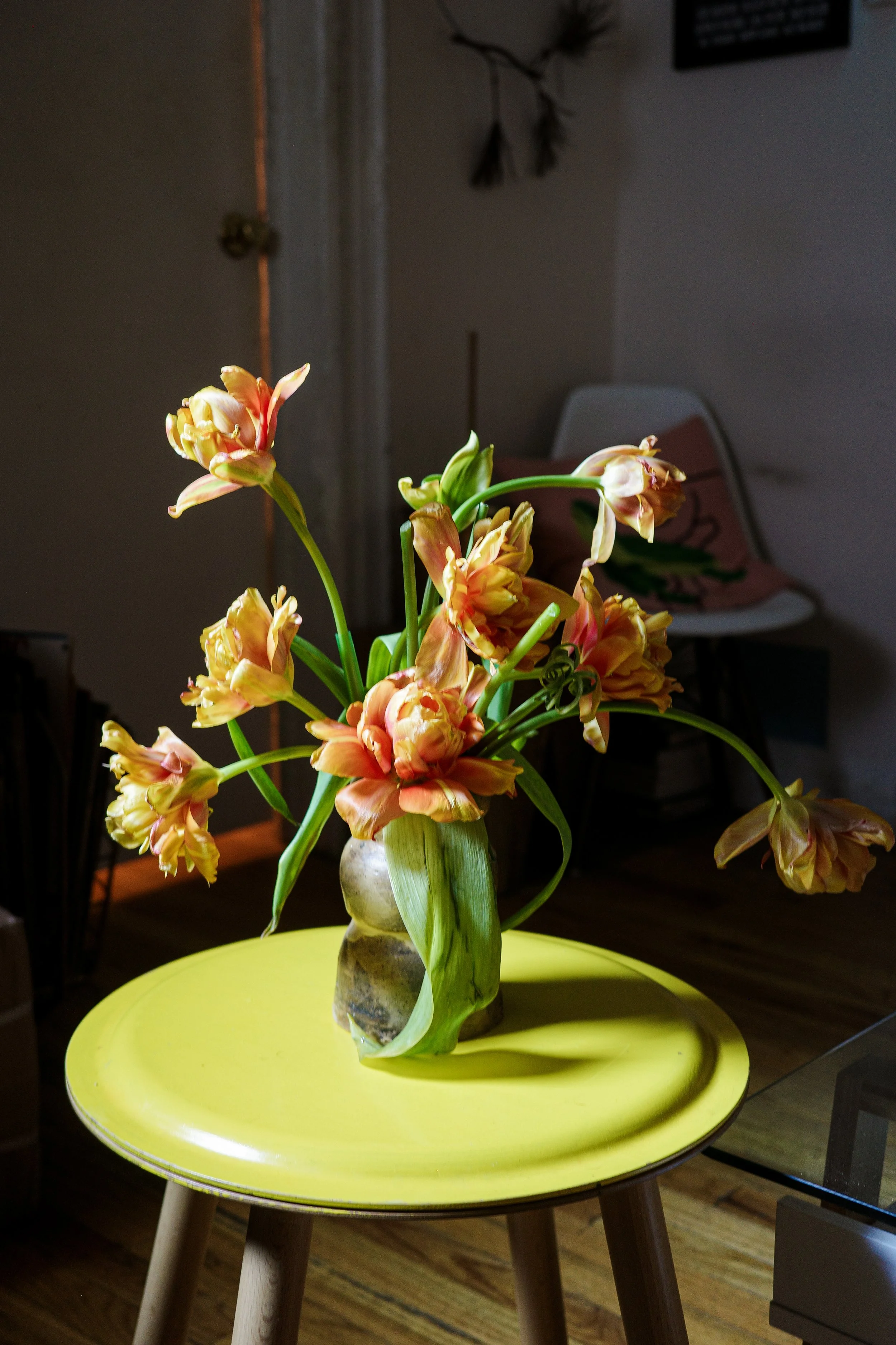 personal notes: I really love tulips. to minimize waste I like using the stems and foliage as additional components that I can add to my arrangements.